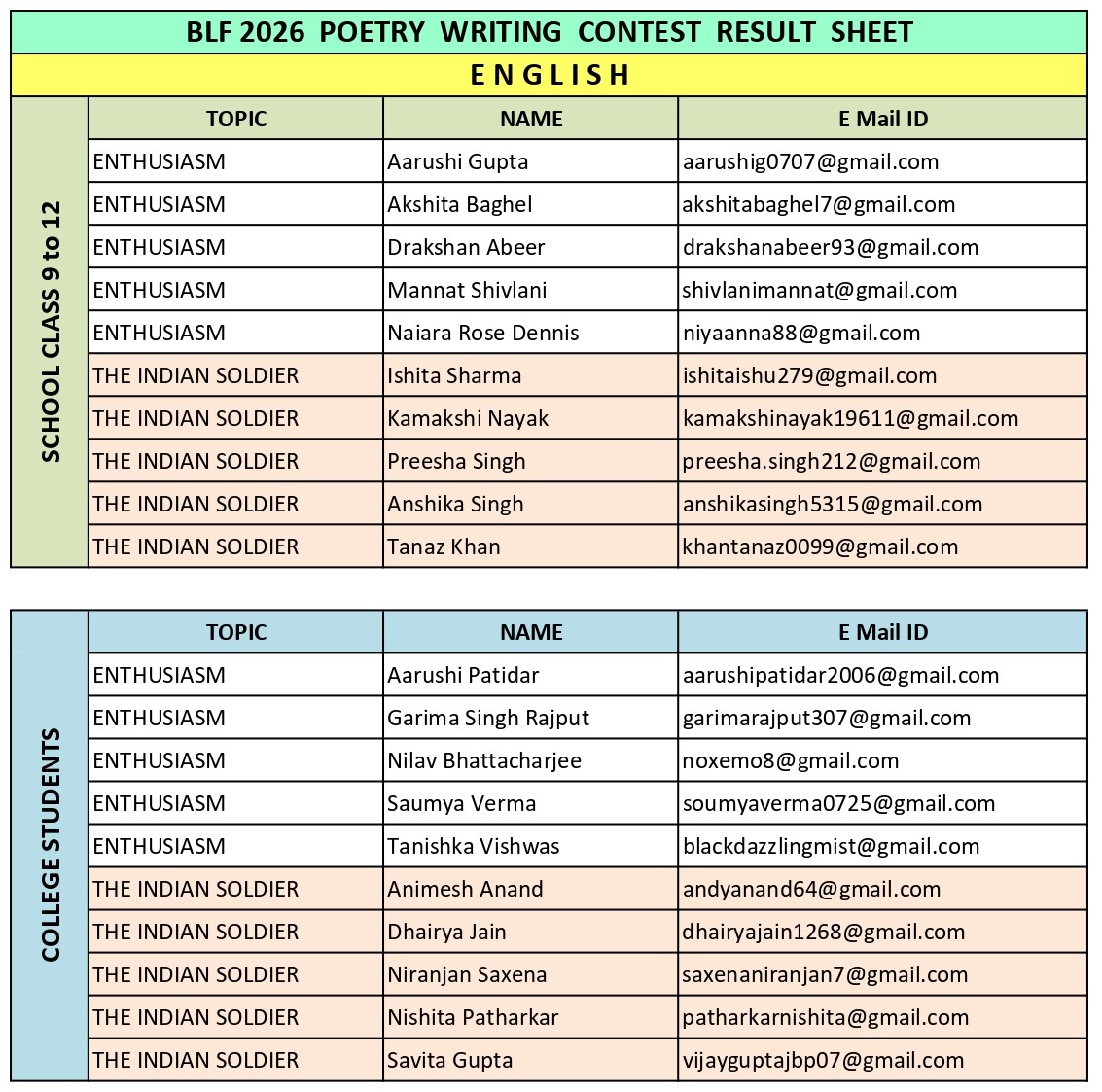 Poetry Contest Result ENGLISH
