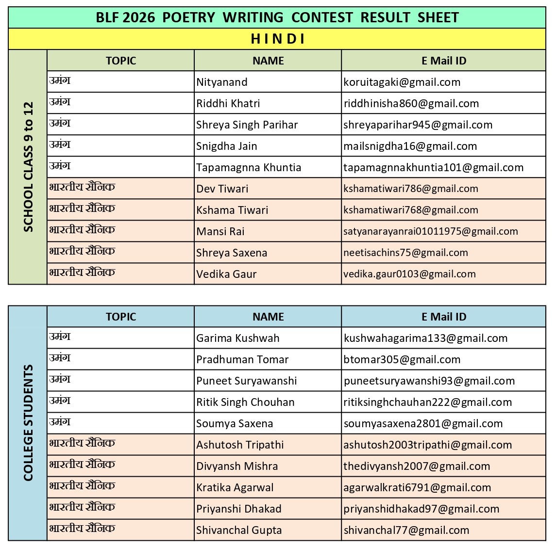 Poetry Contest Result HINDI